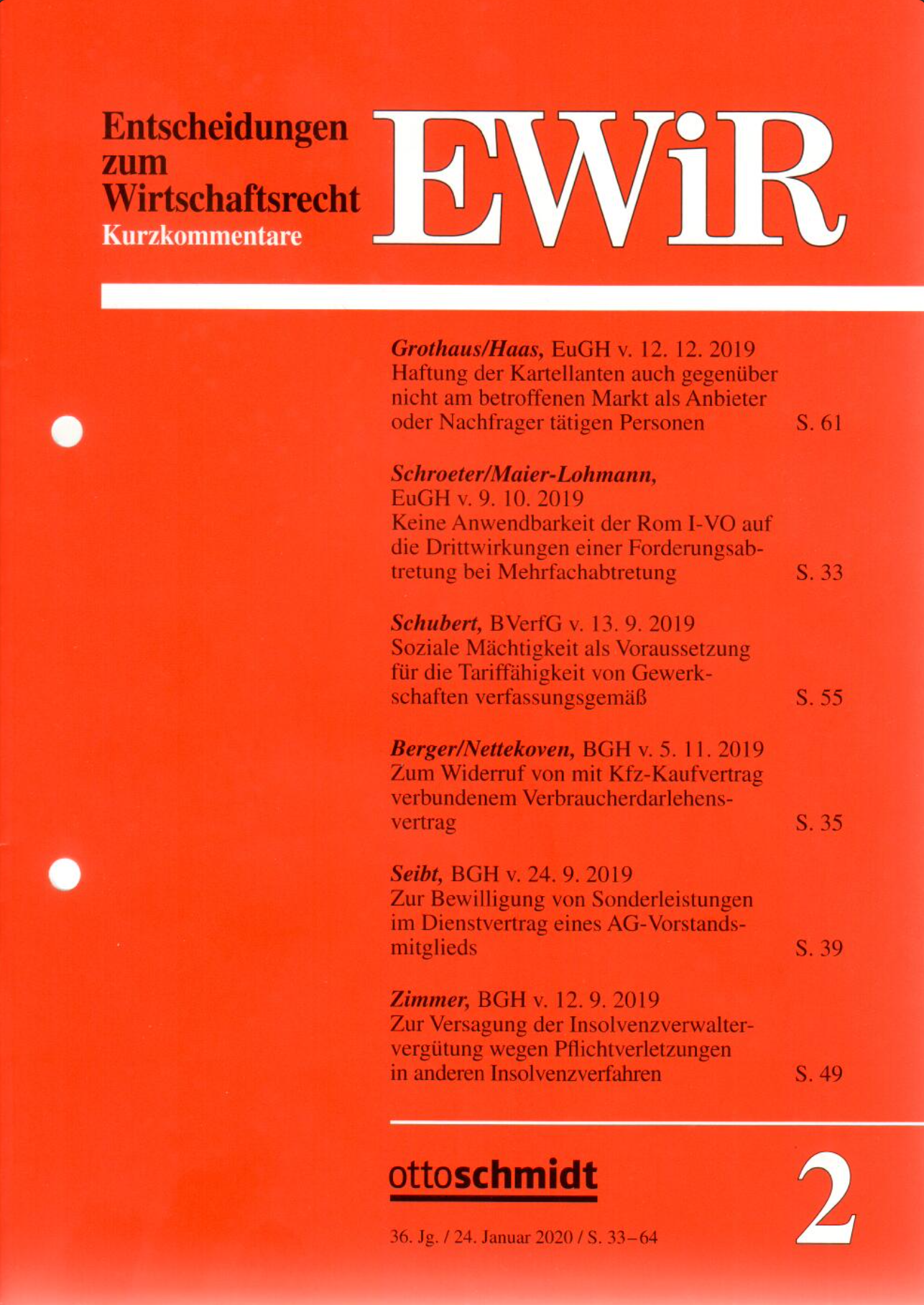 Entscheidungen zum Wirtschaftsrecht (EWiR) 2020(2), Otto-Schmidt, Seiten 33–34 (gemeinsam mit Prof. Dr.