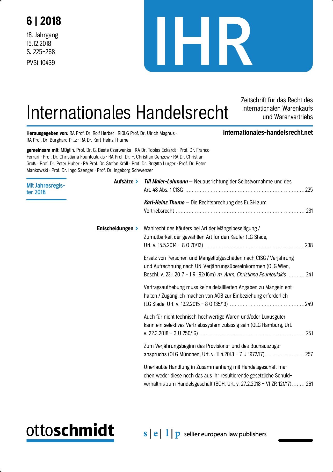 Internationales Handelsrecht (IHR) 2018, 18(6), Otto Schmidt, Seiten 225–231